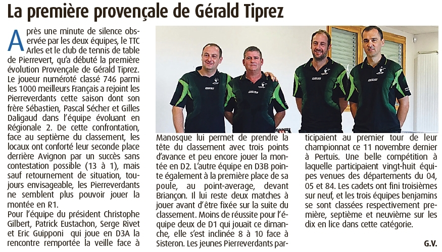 Article HPI:LA PREMIERE PROVENCALE DE GERALD TIPREZ